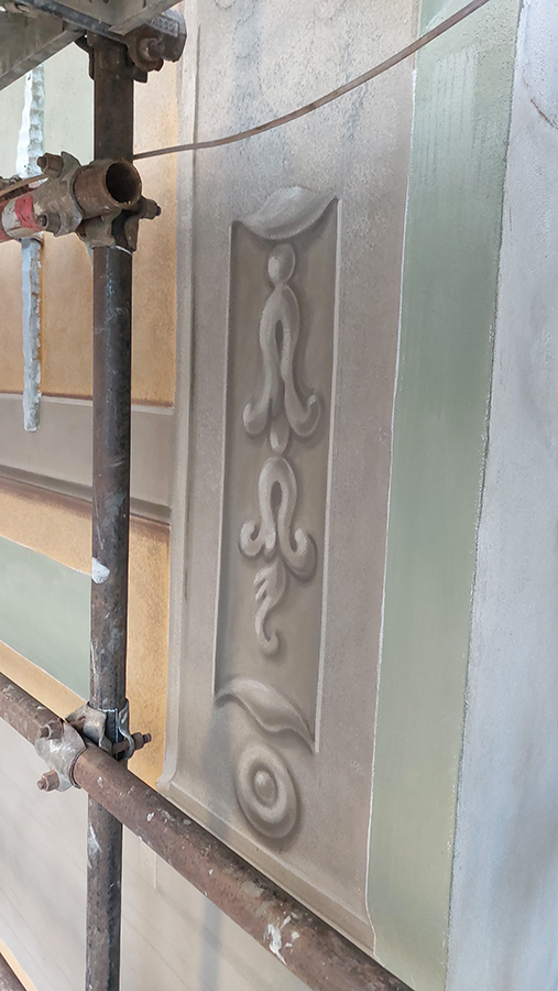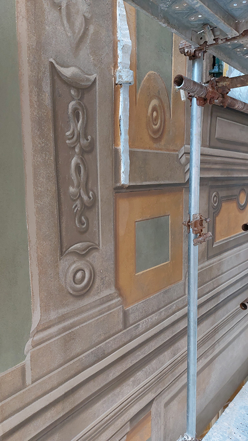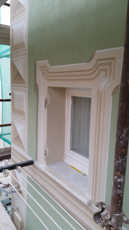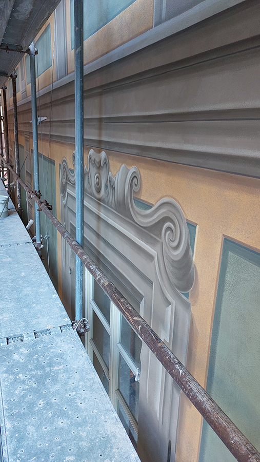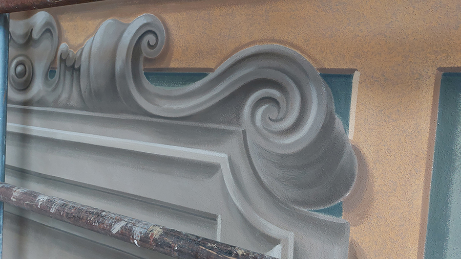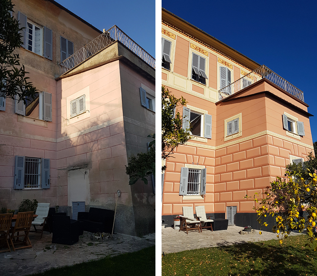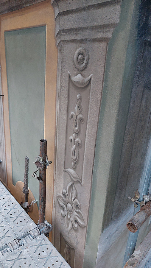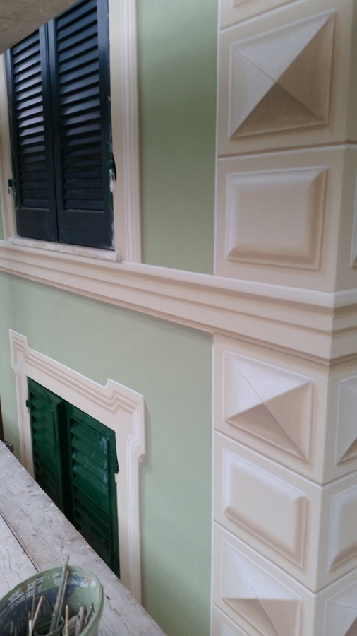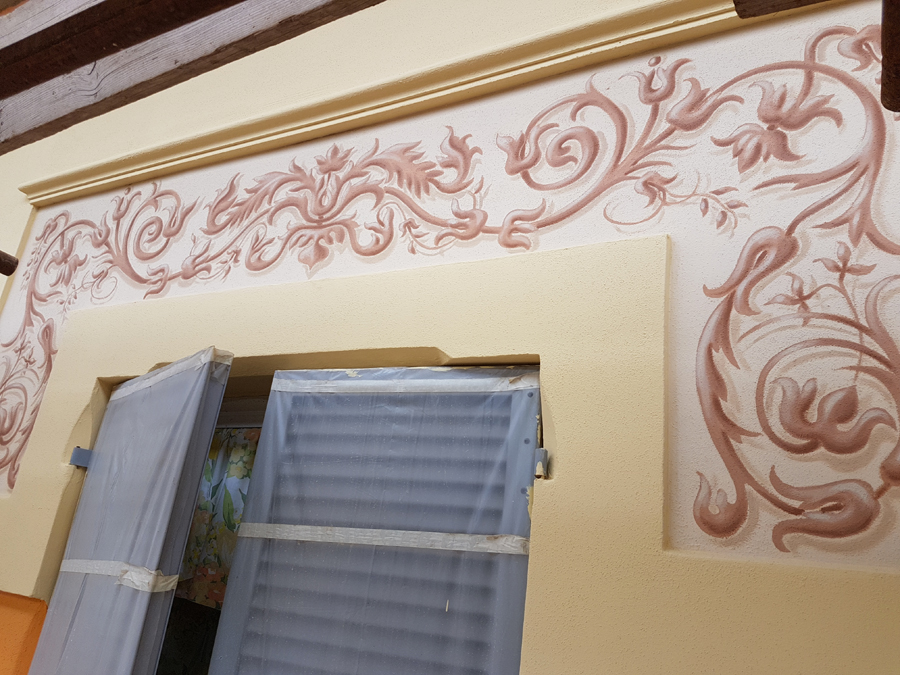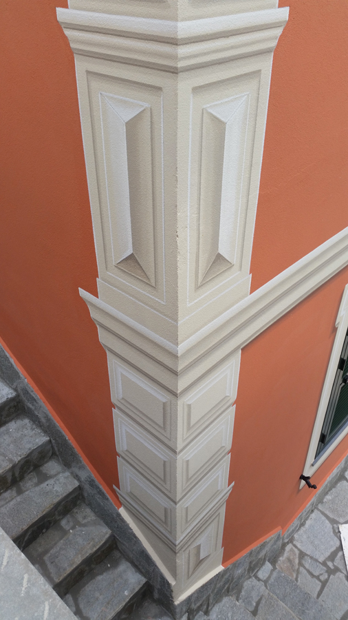In questo panorama i miei interventi si inseriscono nel solco della tecnica tradizionale con riferimenti specifici ad uno stile classico filo-ottocentesco, con la peculiarità che le decorazioni geometriche e i motivi ornamentali, vengono progettati in esclusiva e adattati secondo le caratteristiche dei prospetti dell’immobile rendendo unico e inedito il prodotto finale.